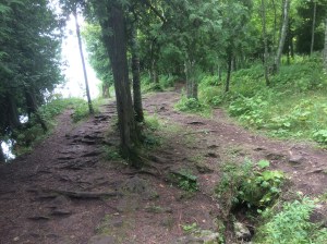 If you follow the shore south, you will walk along the cliff on trails that erratically fork and resume. Sometimes a pathway branches off right onto the rocky ledge. Downed trees, at other times, are obstacles while sprouting rocks and roots keep you alert. The lush green combined with the slapping of the waves, are a step above the average nature trail, inspiring both awe and tranquility.
