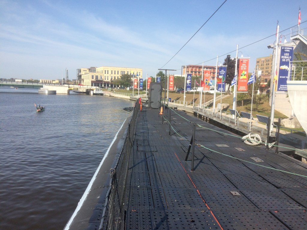 I enter the museum and discover a dignified hall, as I approach a marble veneer counter nestled next to a typical gift shop. I am greeted courteously and informed that, included in the price of admission, there is a submarine tour aboard the USS Cobia, a sub similar to the twenty eight vessels constructed in Manitowoc during WWII.
