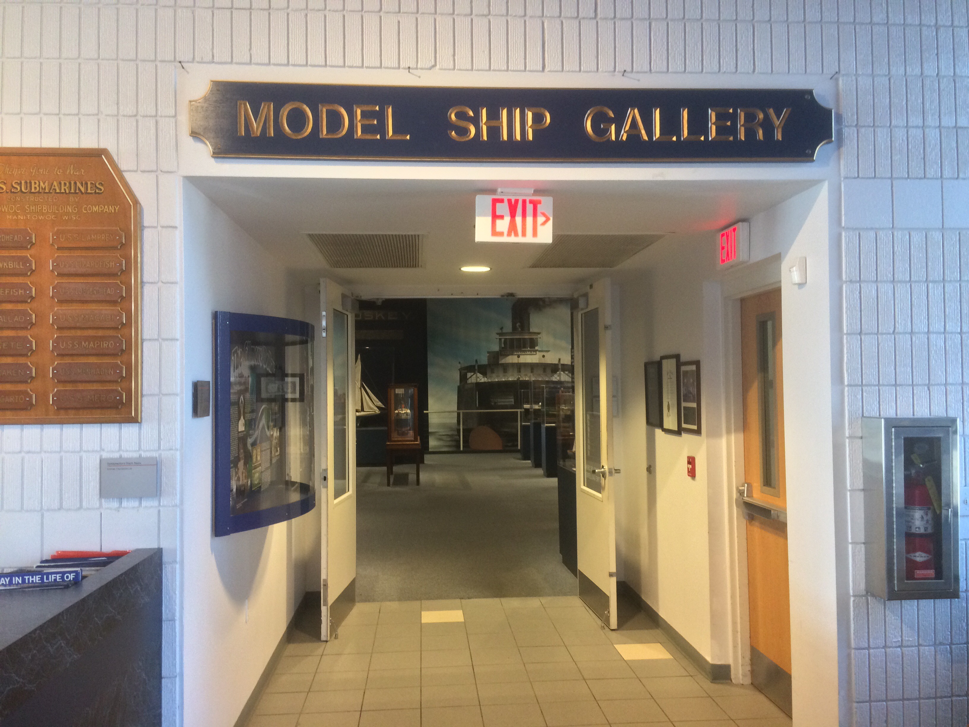 I enter the museum and discover a dignified hall, as I approach a marble veneer counter nestled next to a typical gift shop. I am greeted courteously and informed that, included in the price of admission, there is a submarine tour aboard the USS Cobia, a sub similar to the twenty eight vessels constructed in Manitowoc during WWII.