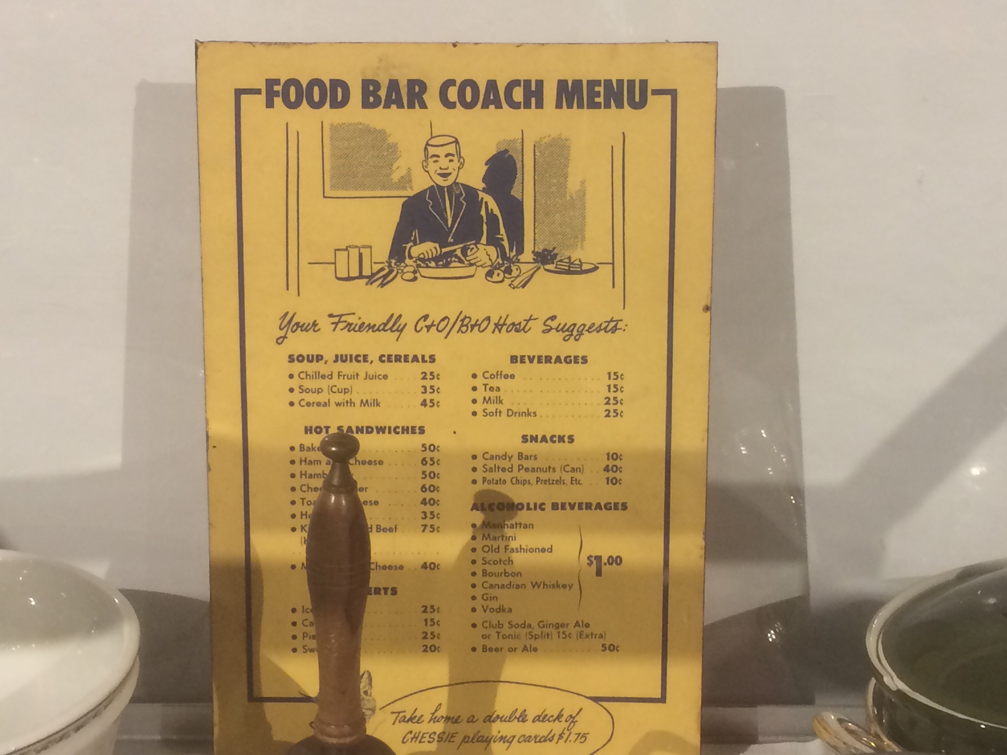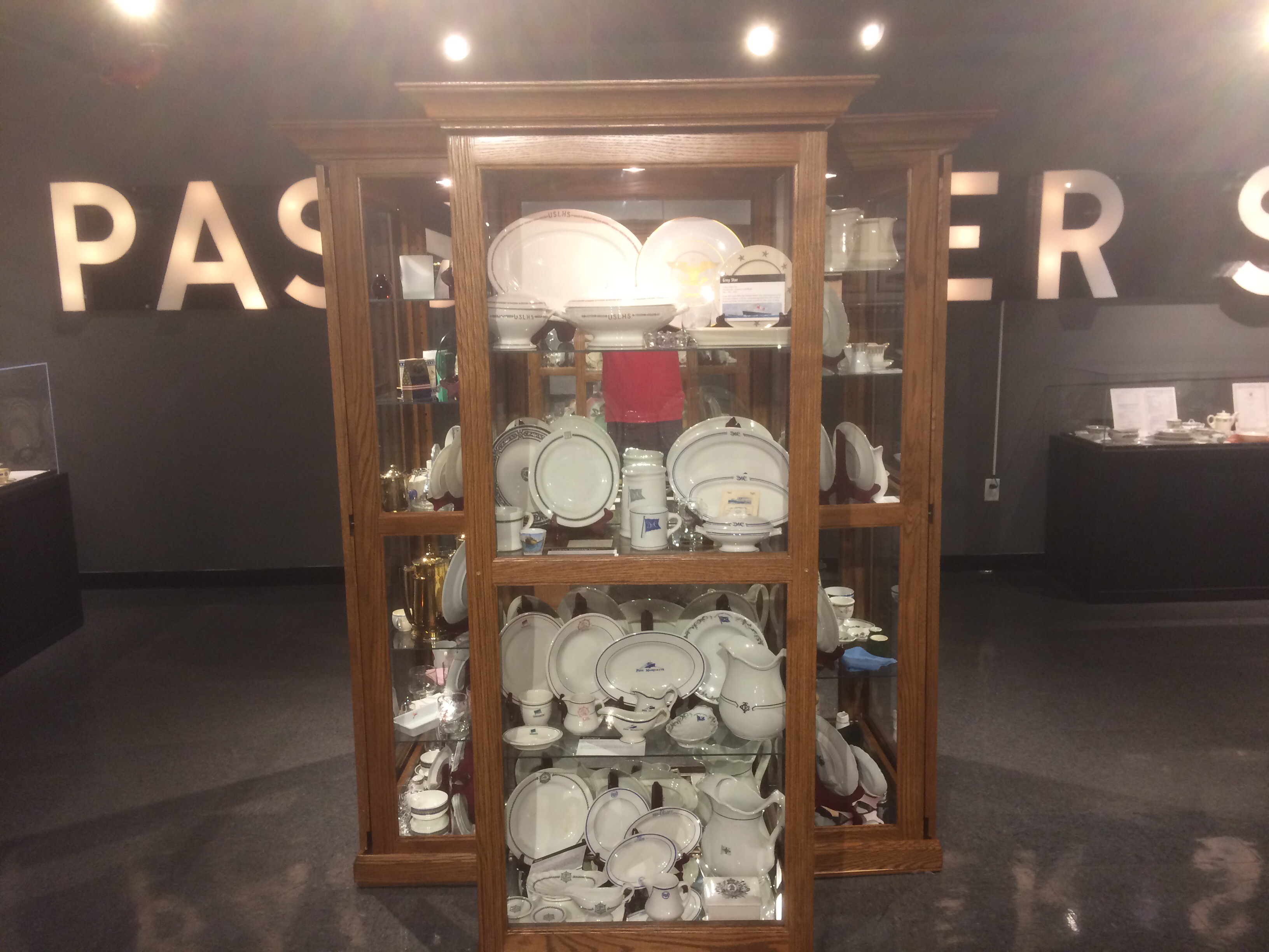 After the show, I proceeded to an interesting exhibit I had not anticipated. China from different modes of transport were cased in glass and on display. It is there to depict the passenger experience, an interesting bit of history. However, amidst the china, some from the airship Hindenburg, I regarded a novel dining car menu the peak of the collection.