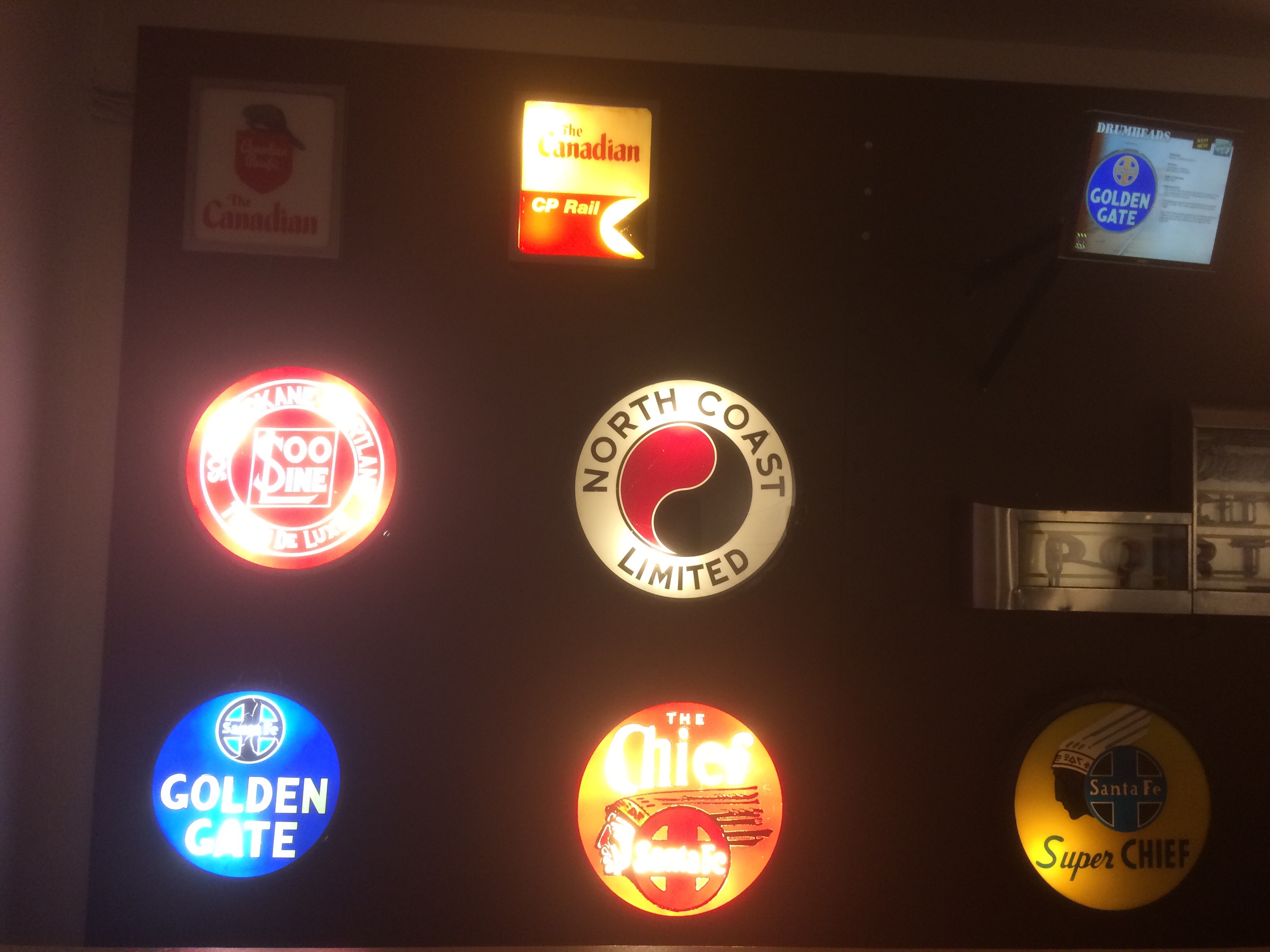 The next feature, the Baur Drumhead Gallery, which exhibits lighted signs designed for the rear of passenger trains, continues the tale of the passenger experience. The signs displayed must have once drawn attention and esteem from many envious onlookers, as they spied the trains passing through their towns.