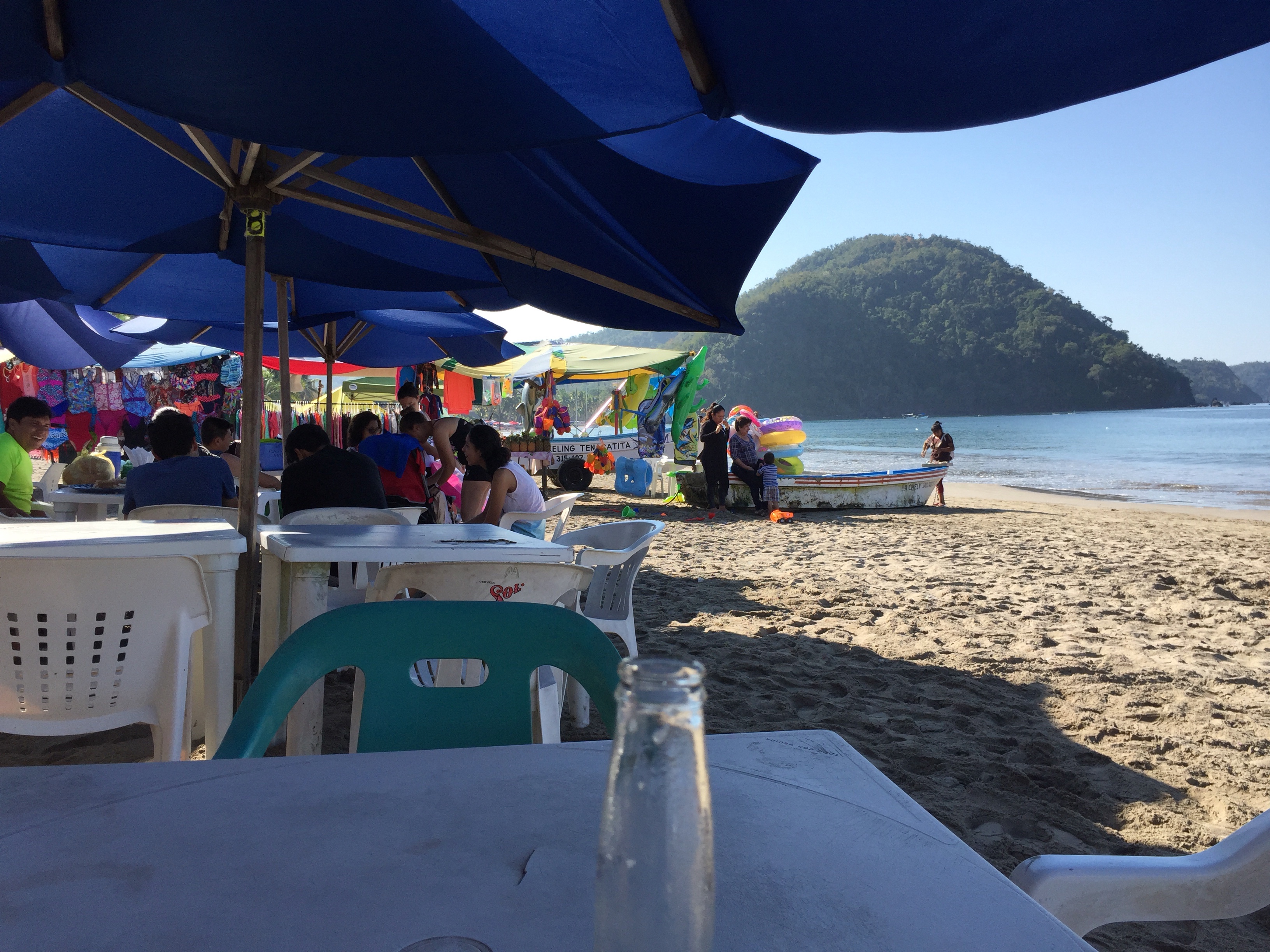The bus drops us off right at La Manzanilla’s beach. I’m stunned as tables, marked with shade umbrellas, dot the beach for as far as the eye can see in both directions. The sun gradually warms our bodies as the waves gently roar along the beach. As we are enjoying the peaceful warmth, vendors, selling everything from necklaces to tattoos, approach us.