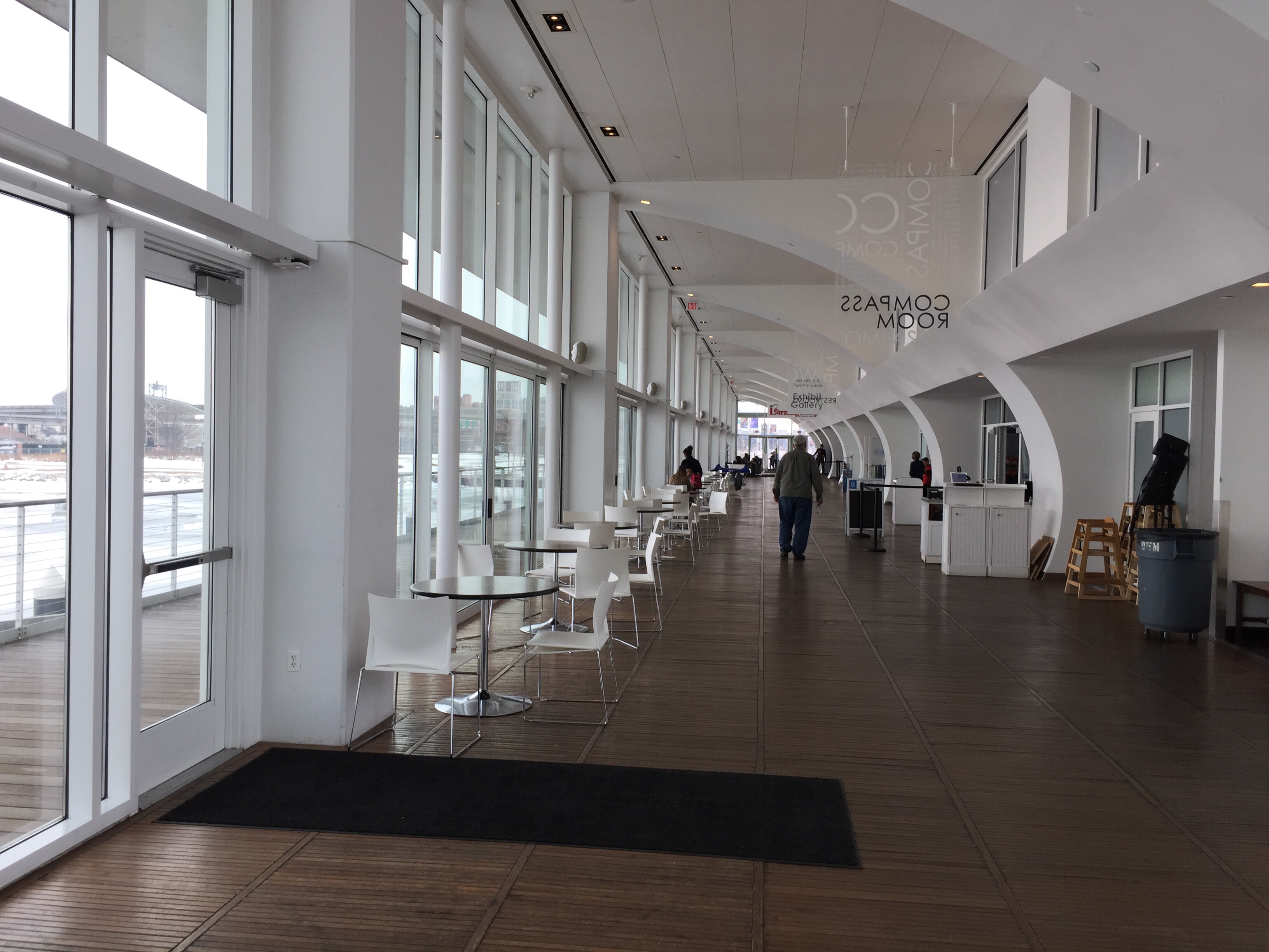I make my way from an underground parking garage to the admission desk of Discovery world.  I receive a discount, as I am a veteran, and am permitted to examine the exhibits.  Leaving the desk,  I find myself striding a sleek and stylish hall lined with glass panels, overlooking the spider webbed fractures in the Ice of  Lake Michigan.