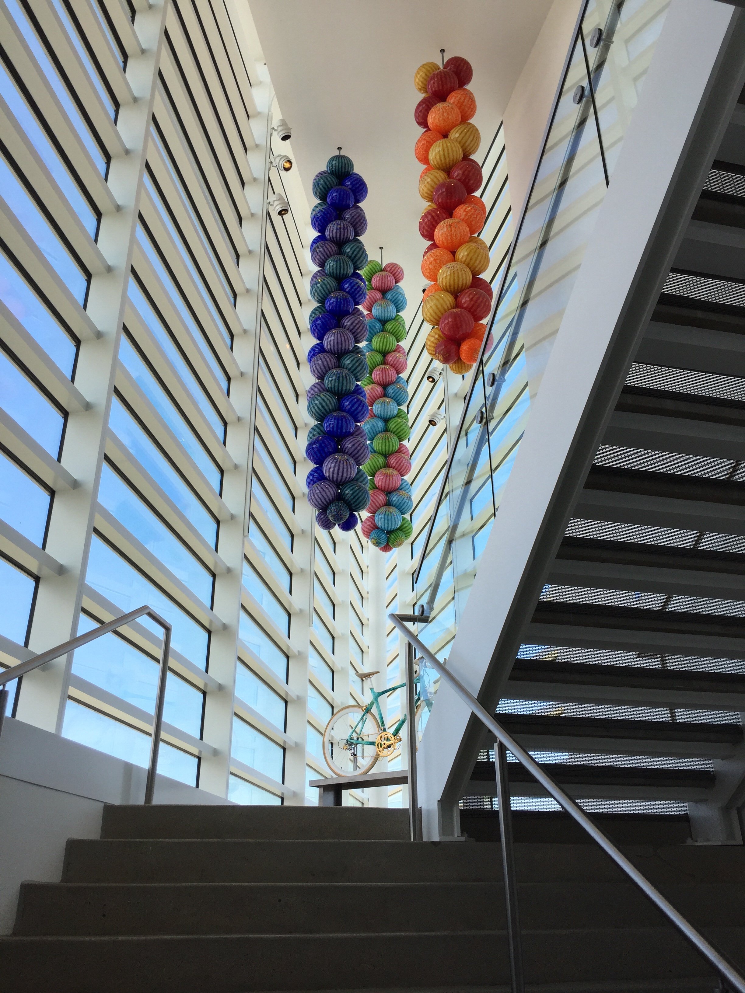 We climb a staircase, as glass panels allow sunlight to stream upon our bodies. When we reach the top of the stairs, we are set to explore the galleries.