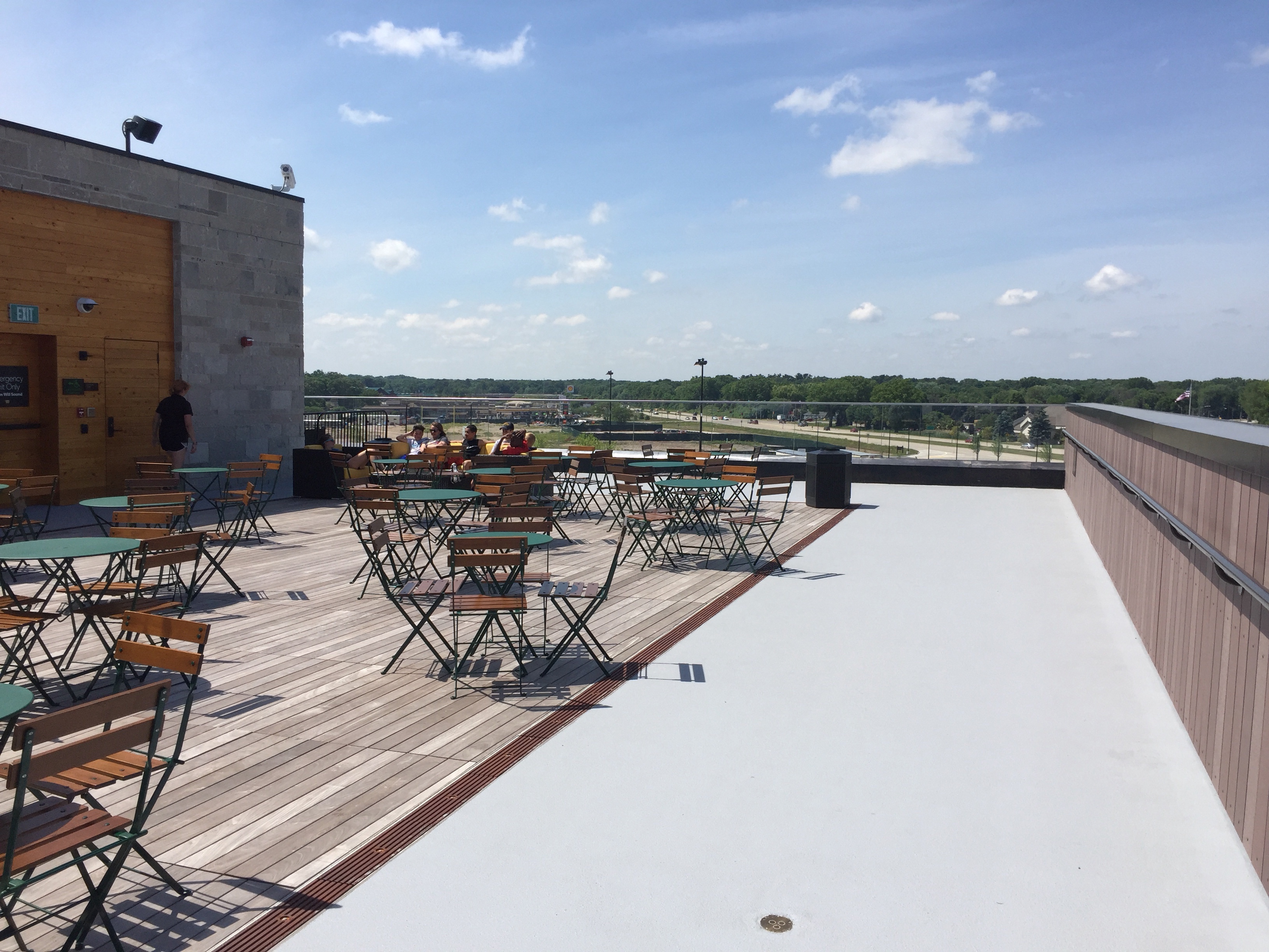 One could spend a joyful day just playing games and running the field, but there’s more appeal. Atop the Kohler Lodge, a stylishly classy hotel, lies the Tavern in the Sky. The bar is much like the rest of the hotel, classy. What sells this place for me is the balcony, as you sit on the fifth floor, that over looks the Packers’ Stadium. The beer list is really good too. There is a dining room set off from the lounge, where one can get a meal, I’m not sure of the prices but its probably safe to say, they’re a bit pricy.