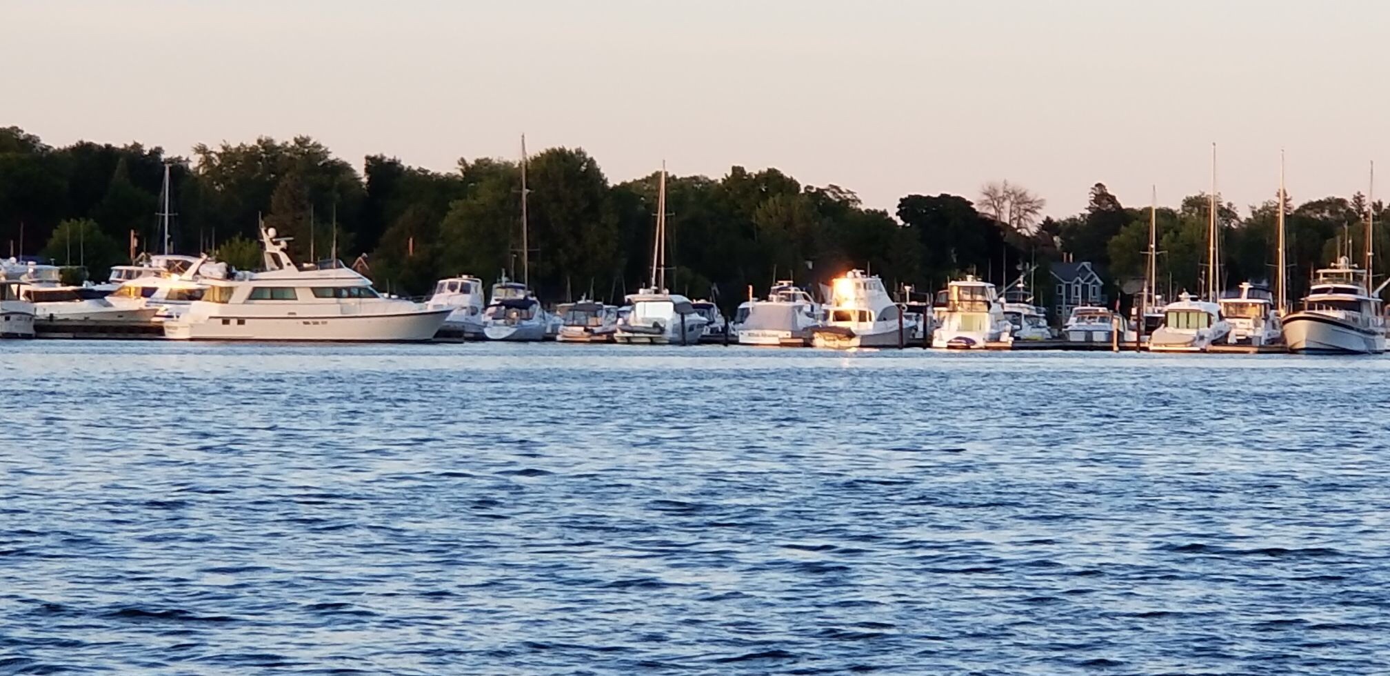 After the trek, around sunset, we wind up in Sturgeon Bay. We take a stroll, finding a frozen custard place known as the frozen spoon. While we eat our rather reasonably priced cups of Ice cream, we venture towards the marinas.