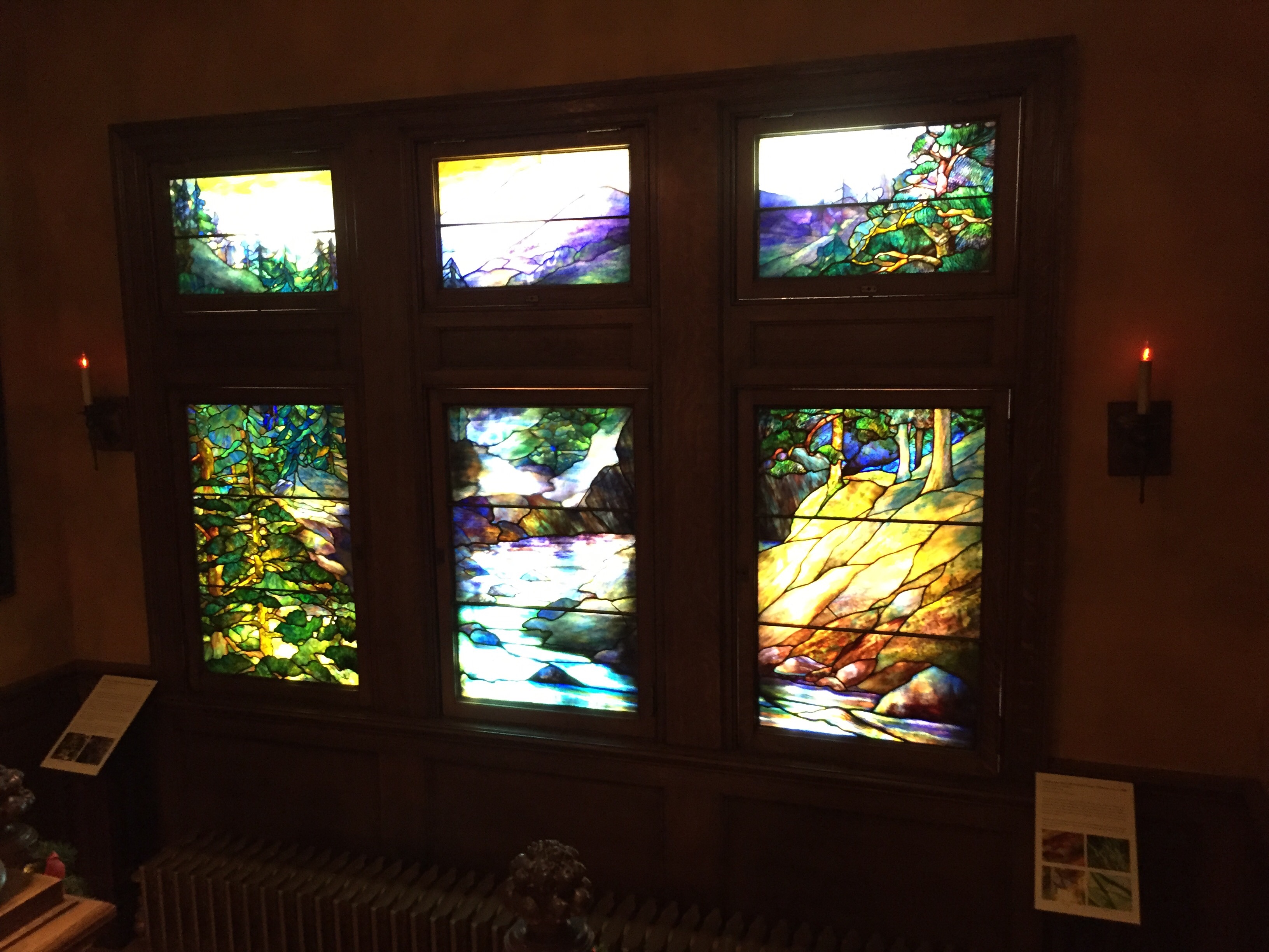 Moving from the room, I find myself climbing a well crafted staircase. Before I reach the next floor, iridescent stained glass windows, products of Tiffany’s of New York, wait for me on a landing. They’re amazing.