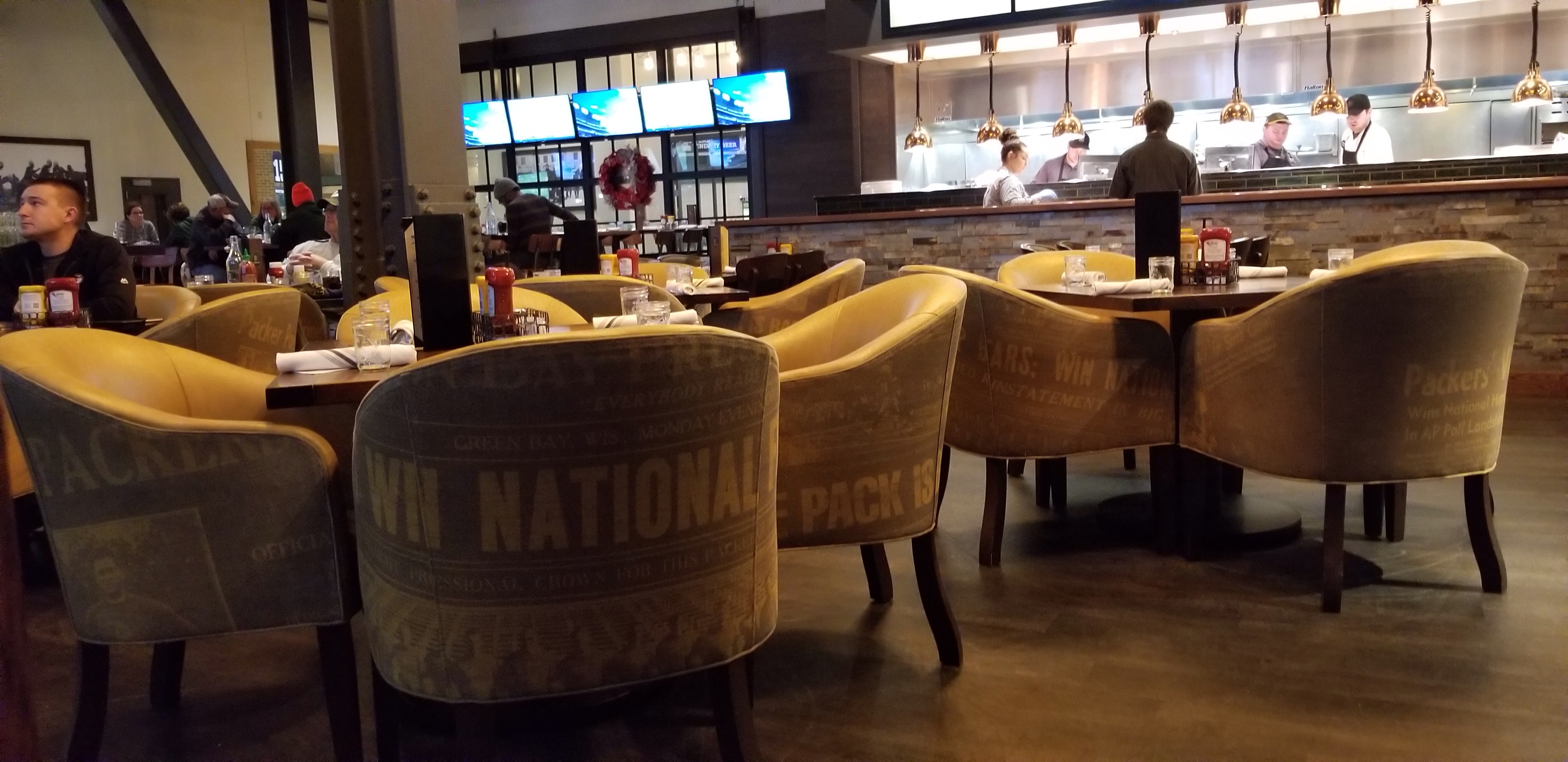 From a packer pro shop to a hall of fame, the atrium plays host to some very luring attractions. One, for instance, as I glimpse the restaurant from the Atrium, is the 1919 Kitchen and Tap. If you’re a packer fan, and haven’t been living under a rock, you know that 1919 is the Packer’s first year of football.