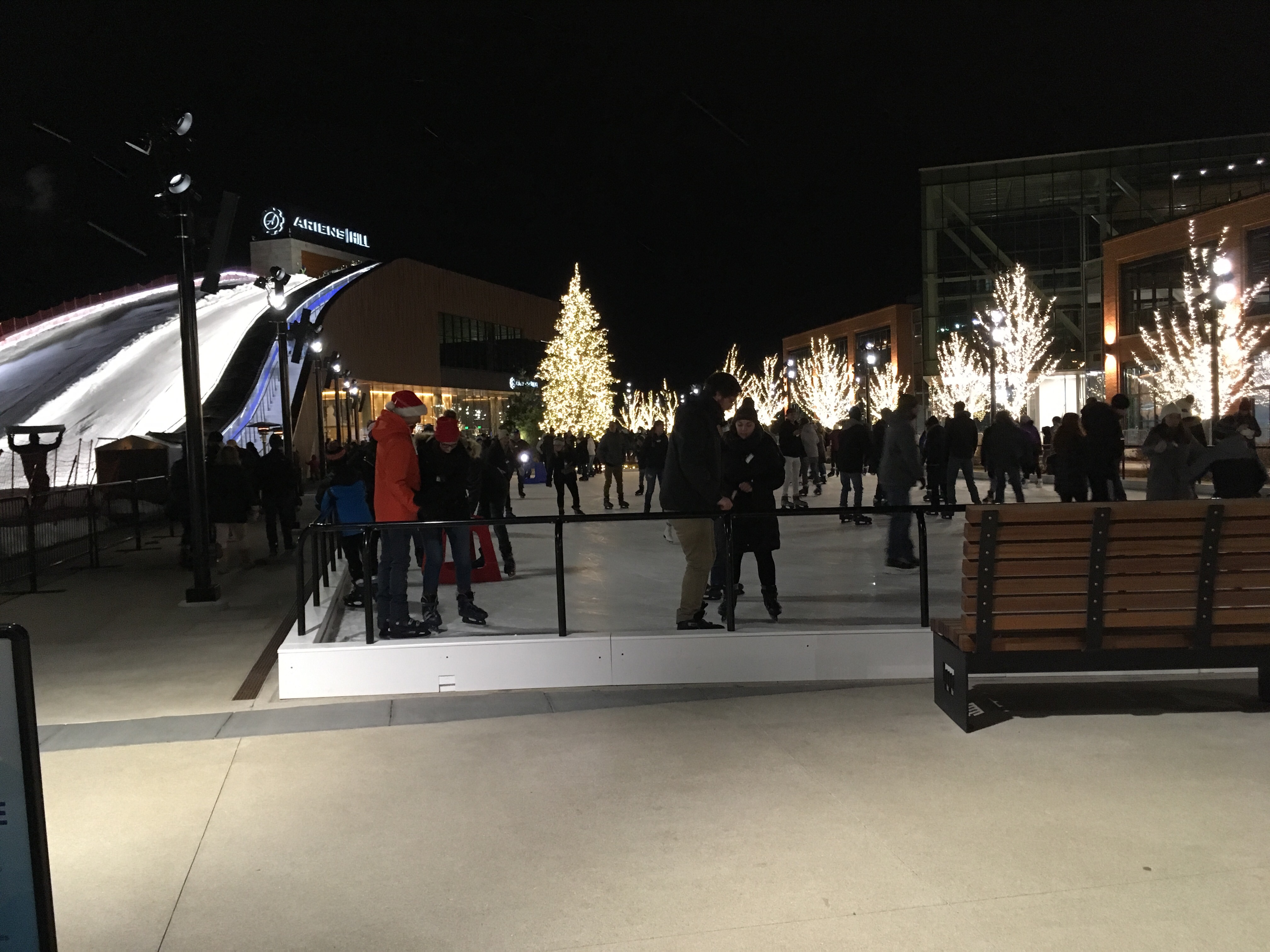 Finally, as this is a travel blog, I’ll finish by writing a bit on the Title Town District. A classy holiday setting with an outdoor skating rink amidst the glow of lit trees and fire pit surrounded by ice, the district invokes merriment by simply walking through the cheerful crowd. Towering over the rink, Ariens hill offers entertainment for those who care to tube down its steep grade. Establishments like Hinterland Brewery and 46 below offer sanctuaries of warmth and hot food.