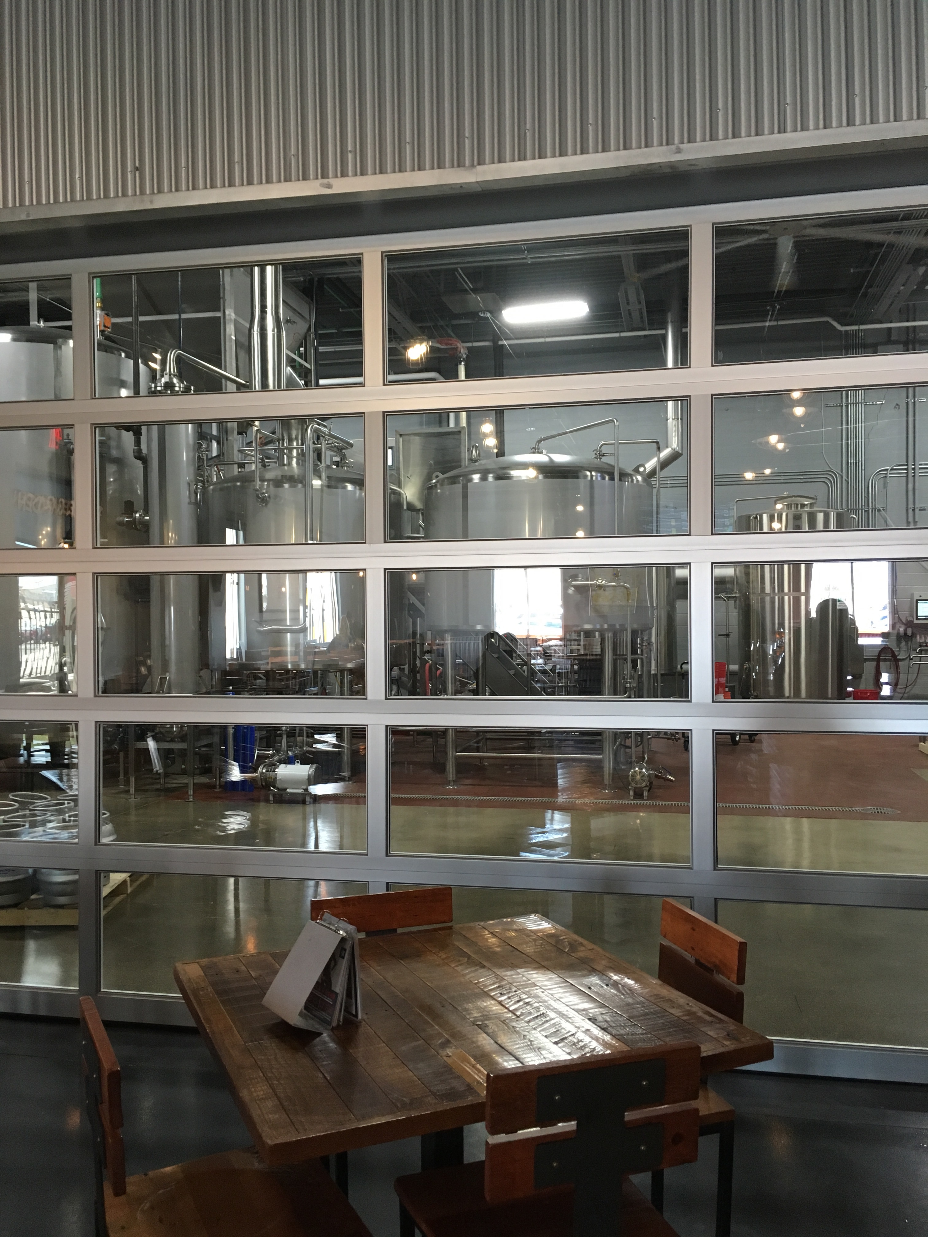 When we walk in, we’re delighted. The tap room is cool, being a decent size bar with windows allowing one to peer into the brewery. As I survey this buzzing room, I discover their is only one TV-It’s not huge either. I think that would be my only complaint. The music is decent, with a moderate volume that doesn’t impede conversation.