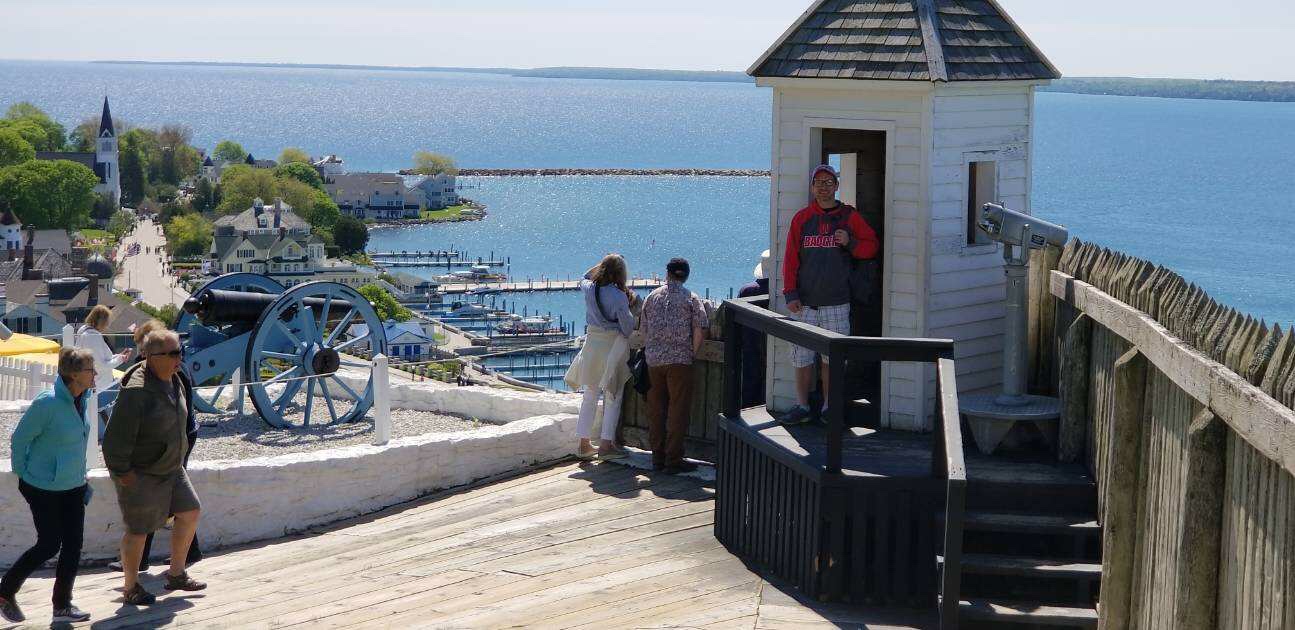 That’s enough with the tourism history, which gives this place its own unique, ‘way back when’ allure. I’ll switch over to another compelling part of the Island: Military History. Actually, with the Island’s position on the Great lakes, this small piece of land has multiple facets in its rich history, Including the Jesuit Missions and the fur trading and fishing industries. It so happened, as we were on the Island during the Lilac festival, with the purchase of a fort Mackinac ticket at $13.50, we were allowed to see attractions such as a 1780 home, a blacksmith shop and a fur trading building for free. However, the two bits of its past that impress the most are, indeed, its Military and Tourism history.