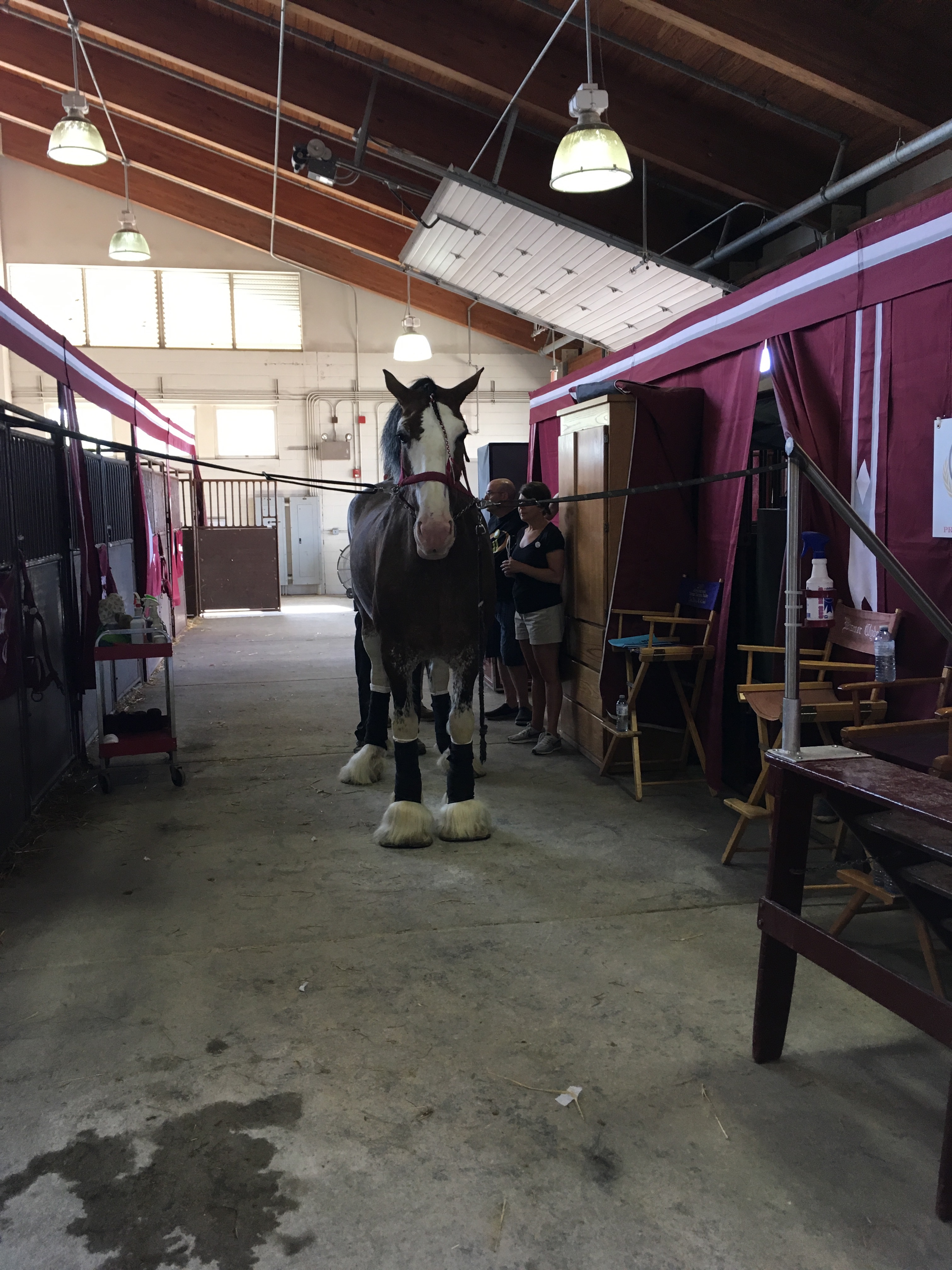 After we eat, we check out the livestock barns which are filled with some very handsome animals. I loved the Clydesdales inside the horse barns. Of course, there are a ton of cows to check out also. We even caught the Holstein judging in the pavilion.