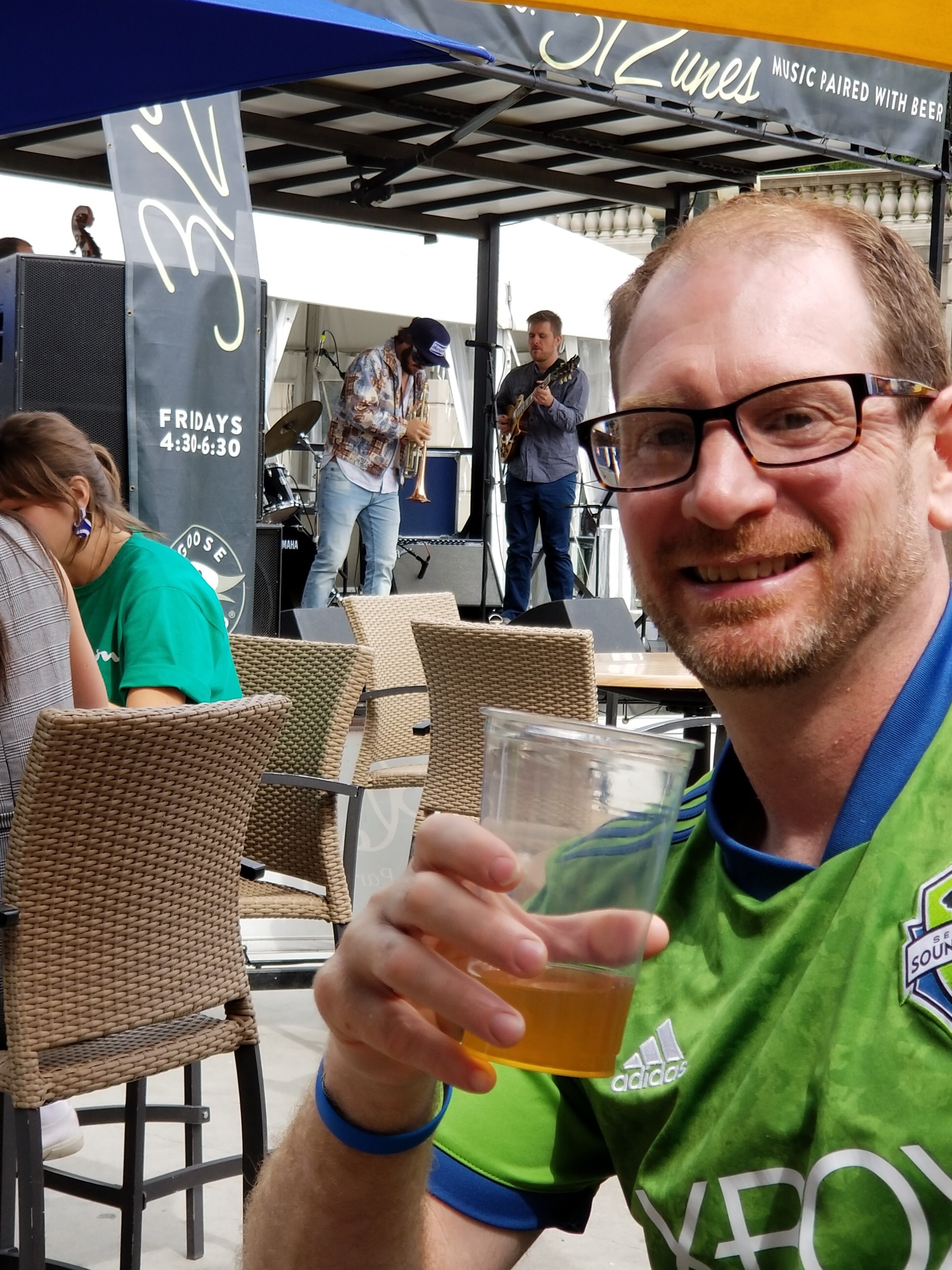I grab a beer at a refreshment stand, and we check out the rest of the festival. There are a few stages and a wealth of talent performing on those platforms. We decide that we’ll take in the atmosphere of Park Grill. There, we discover a three piece band playing some Jazz before the paying customers. Sipping craft beers, we enjoy the band while taking in the Chicago skyline and the bustle of Michigan Avenue.