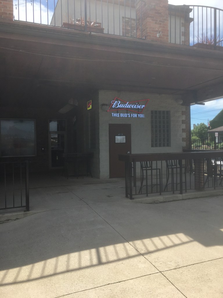 However, as Heidi and I arrive, I find I’m horribly mistaken. The old brick hotel, turned eatery, is buzzing with people. We cling to hope as we reach their concrete patio, enclosed with, what appears to be, wrought iron fencing. Yet, when we arrive, we see groups hovering around the center of the patio, waiting to pounce on a table once it’s vacated. There is no hostess or estimated wait time. The patio’s availability is simply first come first serve. There’s little chance at dining outdoors tonight, even the outdoor bar, which in essence resides in a bit of a lean-to, is packed with drinkers.