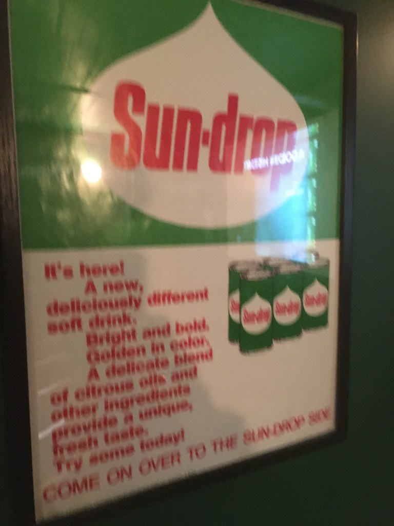 I saunter around, take a few photos and imagine an era just before my birth, and subsequently my first memories. As I cruise further into the museum, I see things that are recognizable. And don’t you know it, I feel a tinge of nostalgia come over me. Apparently, I have some positive Sun-Drop episodes locked deep within my memory banks. Childhood emotions hit me, kind of like a swig of a fizzy citrus flavored soda euphorically dancing on my taste buds. That’s cool.