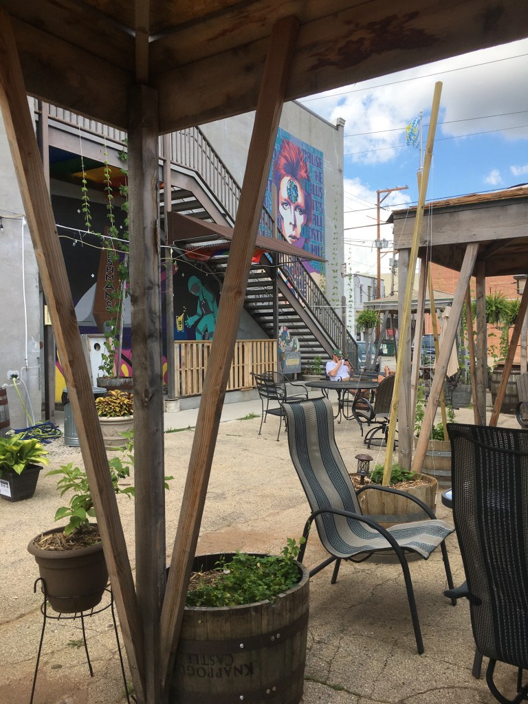 Here, on tap, and also available in canned six packs, McFleshman’s brews are available for consumption. I tried a malty lager and was quite satisfied. All told, I counted thirteen beers available on tap.