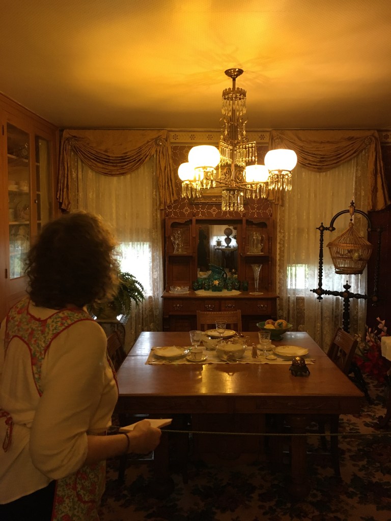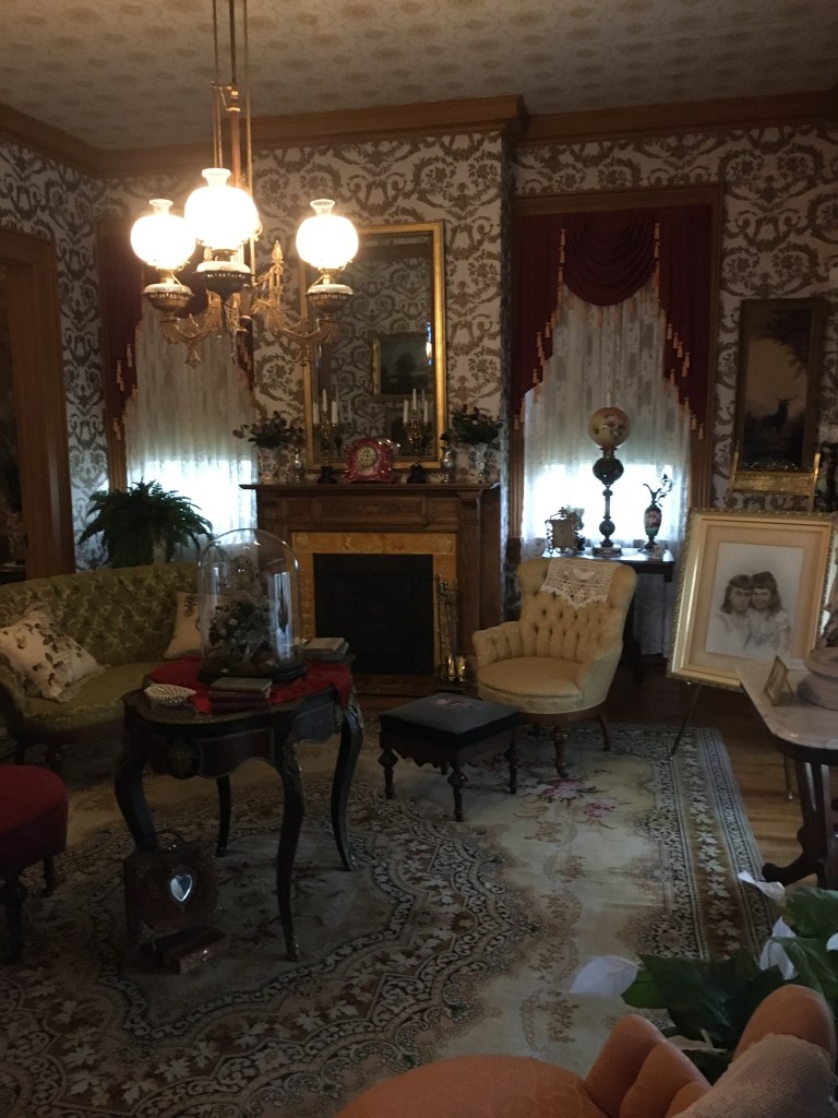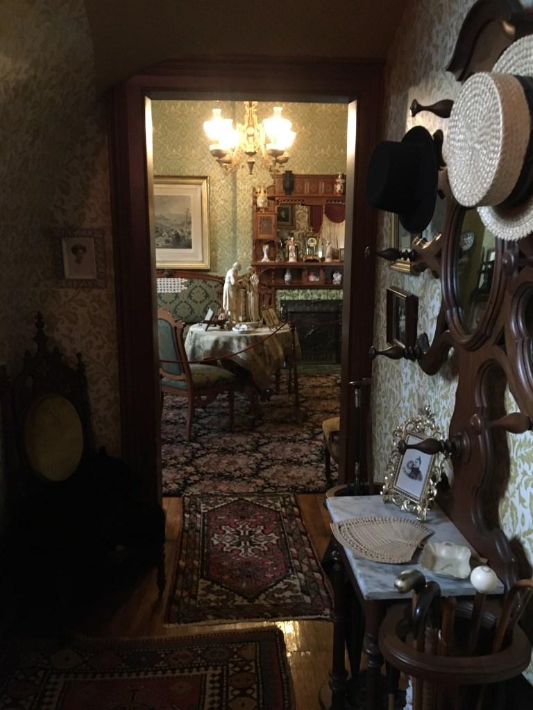 My endeavor took me to the Breyer Home in Oconto, WI. Today, the home reflects the Queen Ann Rennaisonce Revival style, which was very popular in the 1890s. However, our docent mentioned that the home’s original architectural style predated that. She stated that the structure was of Italianate design and built in 1868- which would have made the home a survivor of the Peshtigo Fire. Whatever the case, the interior and exterior scream Victorian Age.