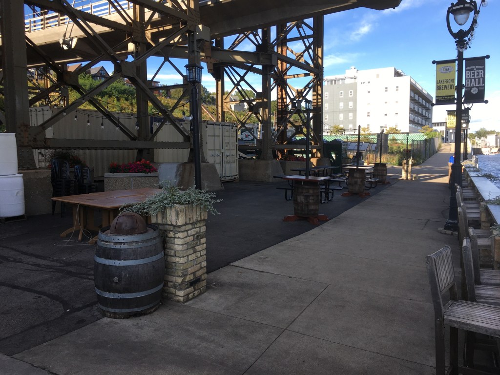 I’ve written a few posts that have touted Milwaukee’s brewing history. Thanks to the Chicago Fire of 1871, this town, set right on the Lake Michigan shoreline, became the brewing capital of the United States, heck, maybe the world. I won’t get into Milwaukee’s surge to beer making prominence; I just wanted to make sure that you know about this legendary beer brewing city. My reason for bringing this up is because, within the last twenty-five years or so, microbreweries have been stealing the limelight from the beer giants. And Milwaukee has a few decent spots that adhere to this new industrial trend. My choice, at least most recently, was the Lakefront Brewery.