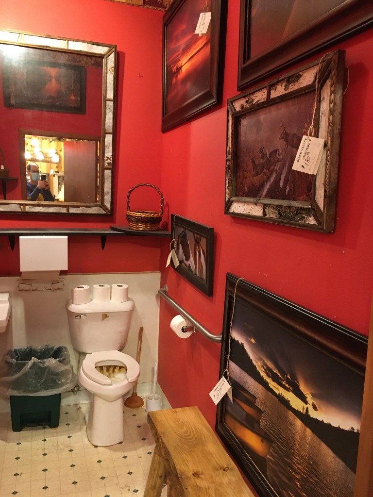 And, while I’m not sure if this is merchandising genius, or a contrivance doomed for failure, this place’s bathroom had items for sale.