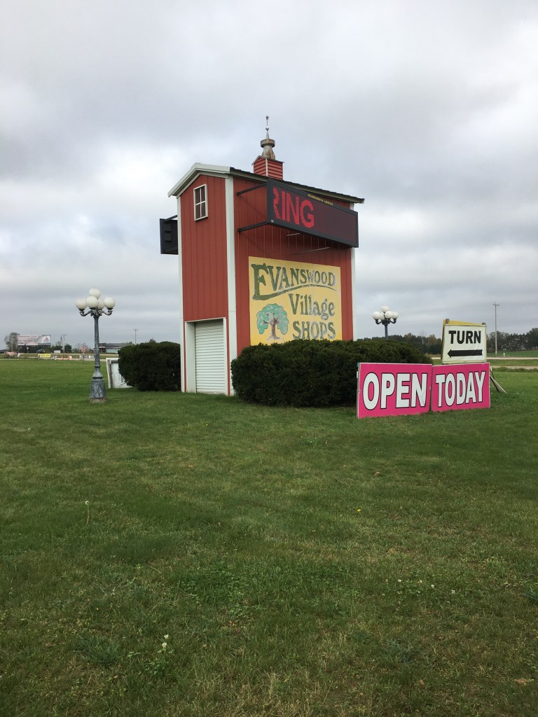 Evanswood is located on Wisconsin Highway 10, somewhere in between Waupaca and Appleton. If you’re traveling that highway, don’t bother to google it. Big yellow billboards, and I’m talking the size of barns, are clustered all around this curious collection of shops. These stores are fun, if not a bit odd, and totally crammed with a crazy array of merchandise.