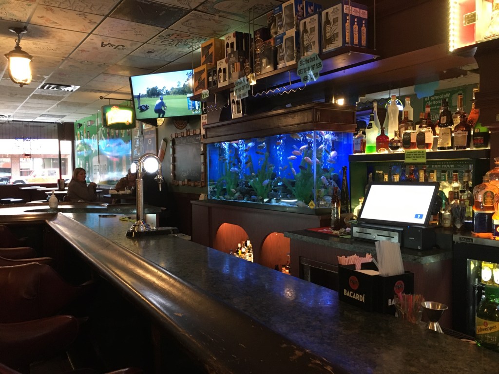 Bazil’s doesn’t stick out for any particular reason. Its decor is prosaic, save for a curious aquarium placed behind the bar…oh, and some fun ceiling tiles. And the menu, which I will get to in a minute, didn’t have anything that really jumped out at me. But, despite the lack luster lures, I found the atmosphere comfortable, and the service was excellent.