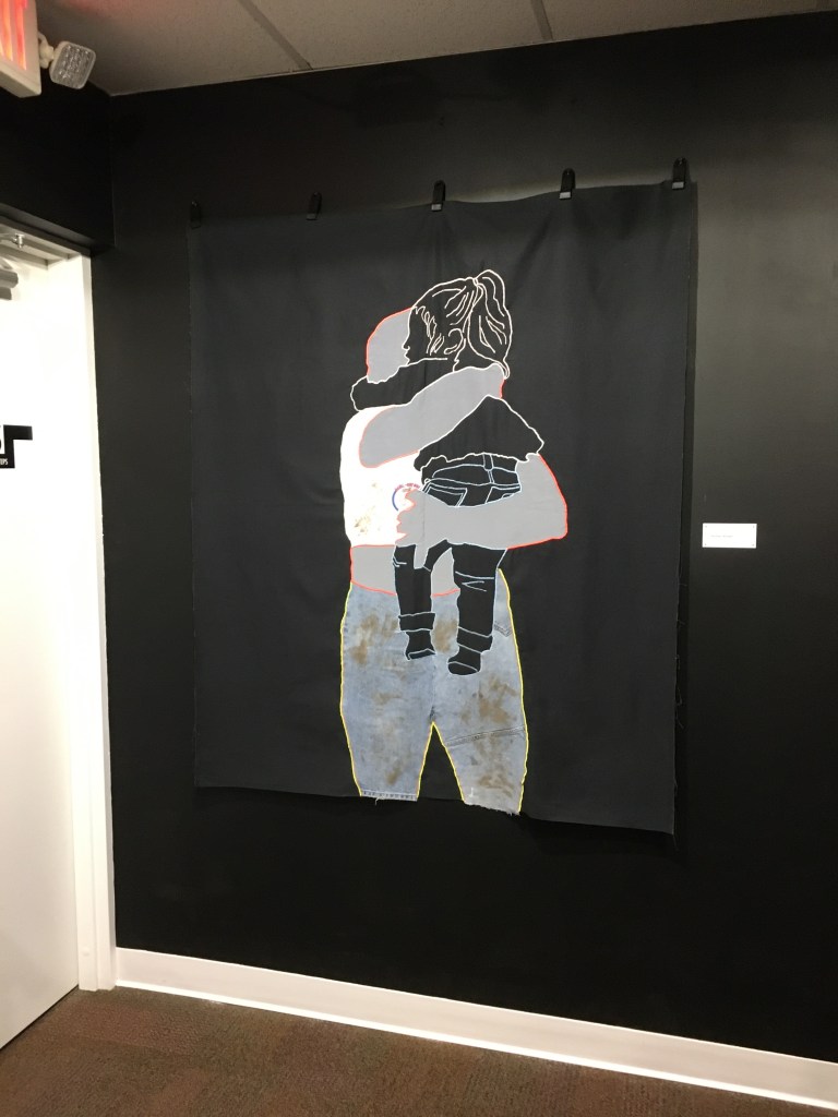 On black pieces of cloth, Arleen Correa Valencia illustrated human interaction through clothing and threads.