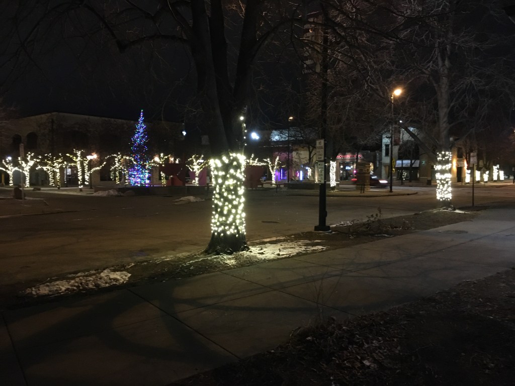 Heidi seemed not in the mood for a bar, “We could check out the lights downtown and at Title Town, you could compare and contrast.”