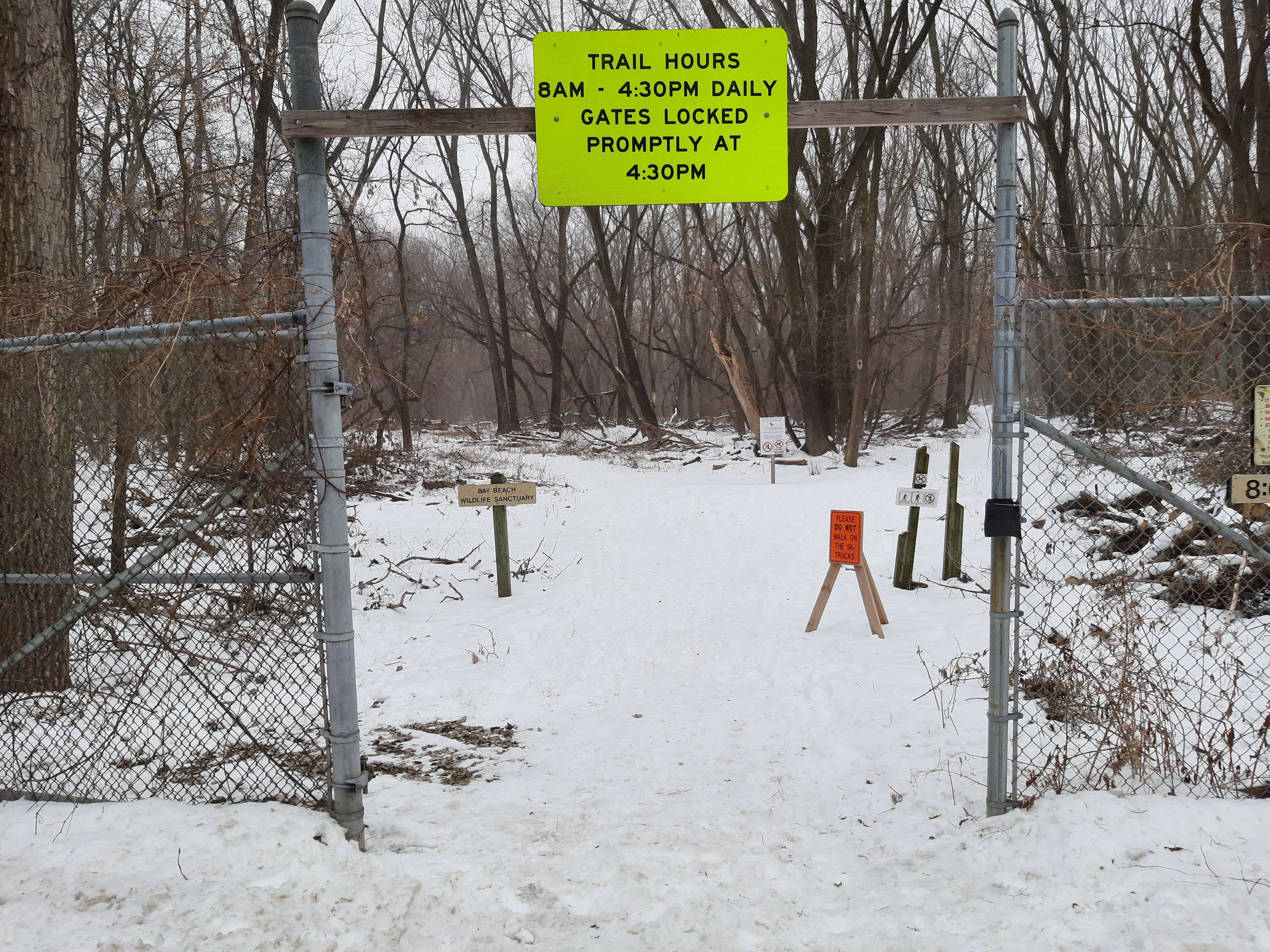 According to a reliable internet source, the Bay Beach Wildlife Sanctuary is one of the largest animal rehabilitation facilities in Wisconsin; its also Green Bay’s largest park. So, besides critter watching, considering that there’s tons of room to roam, you could simply soak up nature on one of the park’s trails. And that’s what I did, as I skiied through this local preserve on Thursday and Friday.