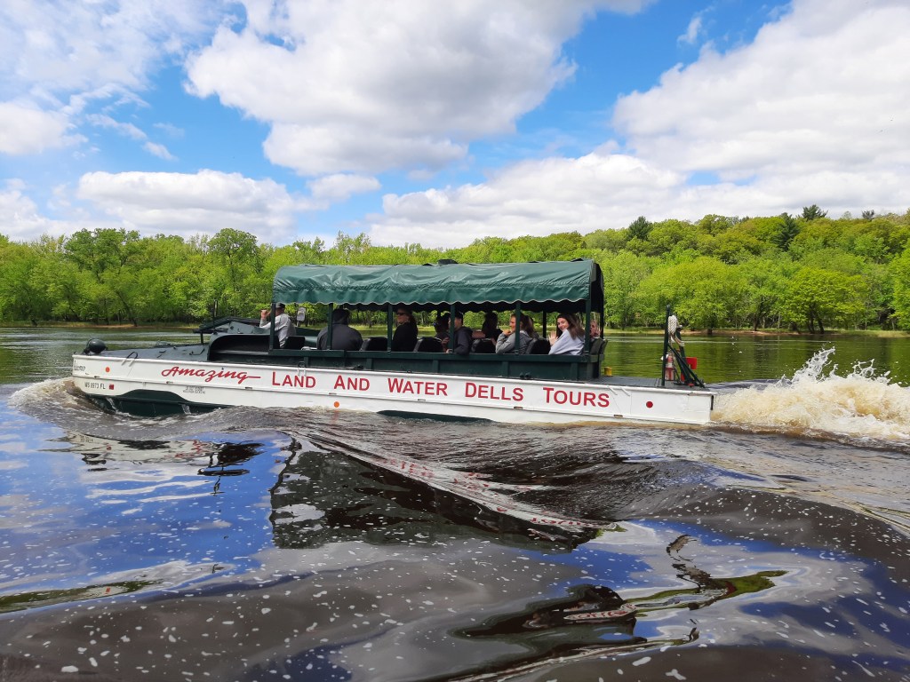 Finally, moving towards our final activity, and, I don’t want to brag, but this was solely my choice. Anyways, if you consider the terrain around the Dells, an amphibious vehicle, one that can course through forests, or may be hum down a river, or, better yet, cruise Lake Delton, would suit the landscape fine.