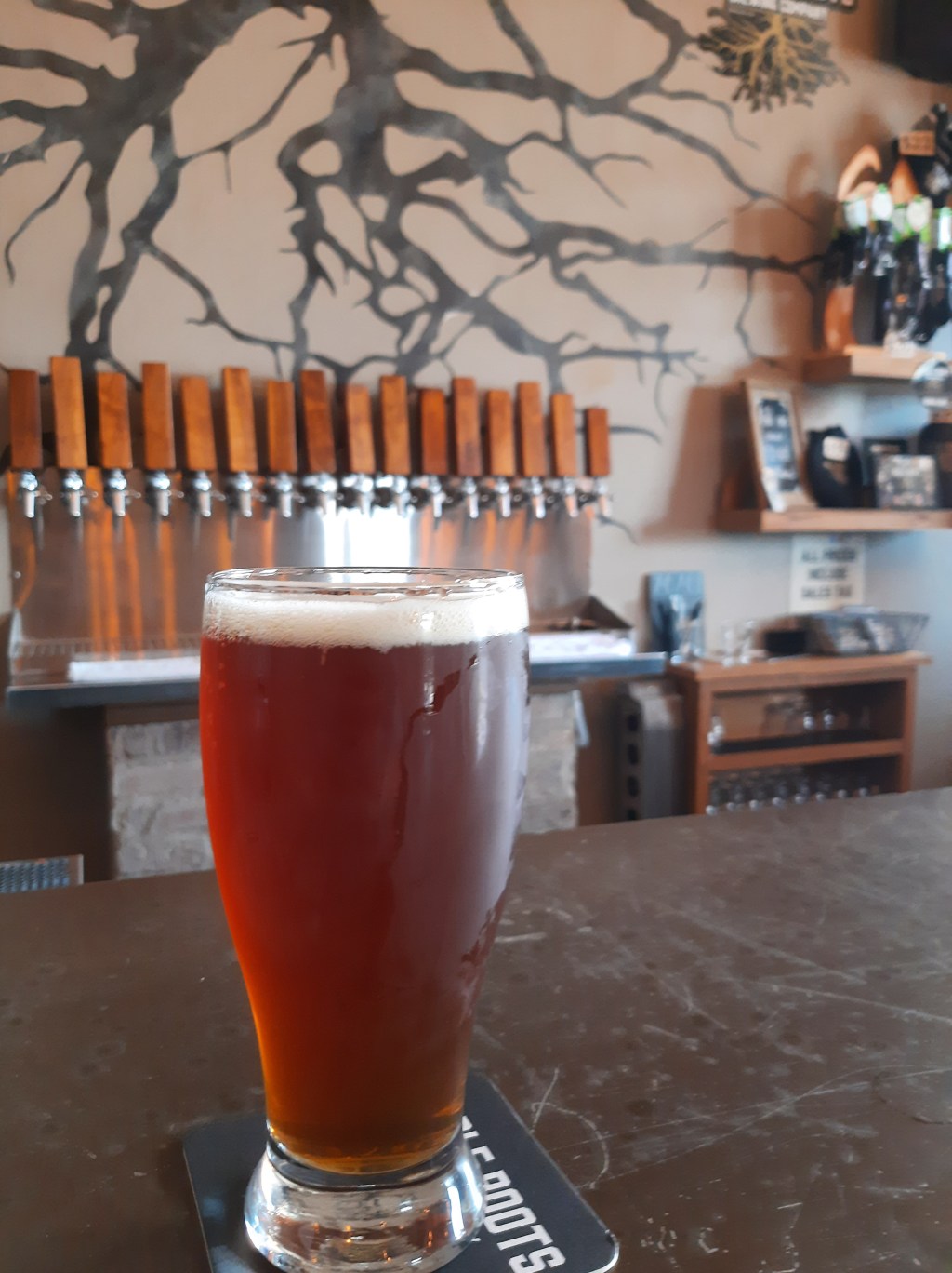 I settled on a seasonal concoction; it was an Irish red ale, known as Red Morning Sky. I also, since I had some time, sampled a couple of other brow raising brews. Both the Belgian Cherry Pie and Noble Roots IPA were above the bar; I’m not embellishing at all – they’re excellent.