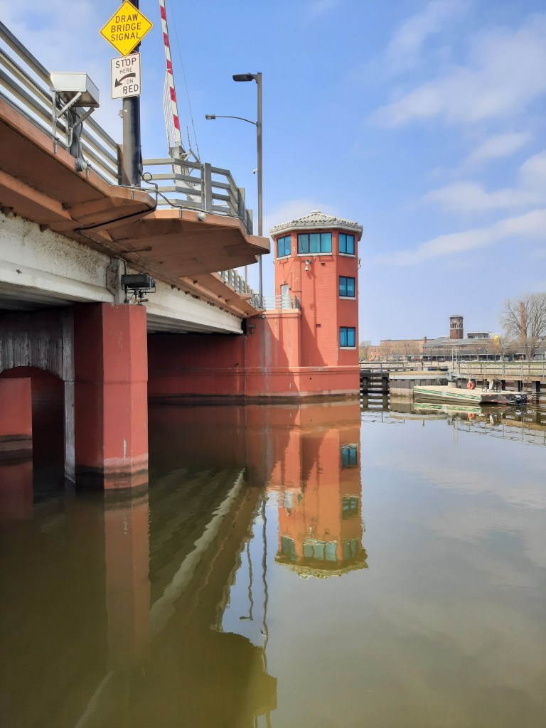 So, we hit Walnut Street, and then cross the Bart Starr Bridge . Here, blue collar industry is in your face.