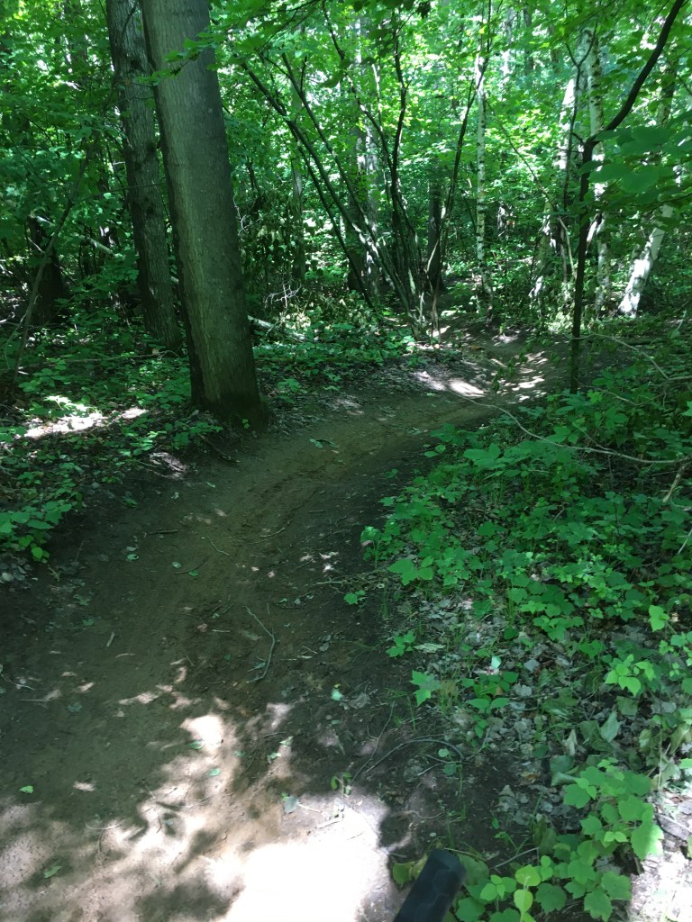 As for the scenery, It’s a rugged woodland. Well, much of it is at least. There are some wide gravel trails, but, for the most part, the double tracks are grassy woodland paths and, being much the same, the single tracks serpentine through dense green – boasting both towering trees and thick emerald foliage. Not to mention, while you course through the single tracks, the constantly rustling leaves assure you that this forest is packed with critters-including plenty of whitetail deer.