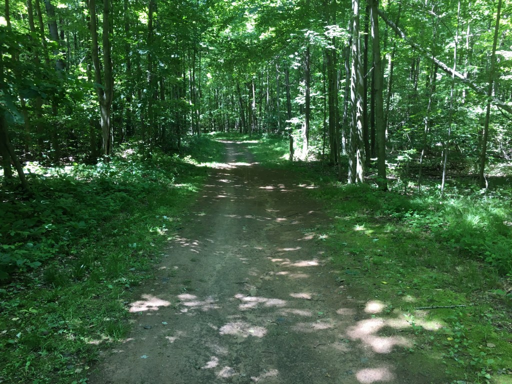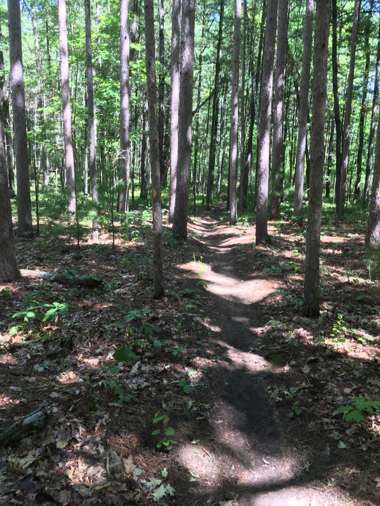 The double tracks sport dirt, grass, sand and a matting of browned pine needles. I should mention, and I’m not totally sure, but the full double track loop would probably be around six or seven miles long.