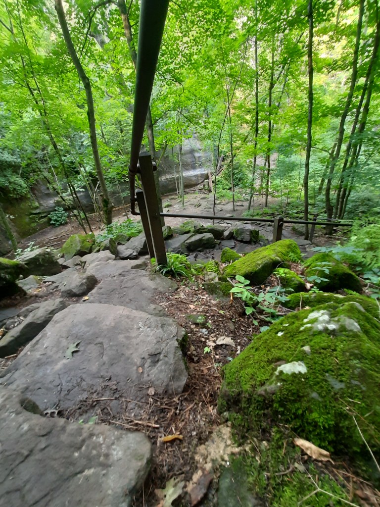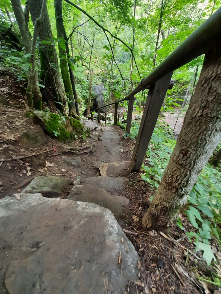 via a tricky stone staircase.