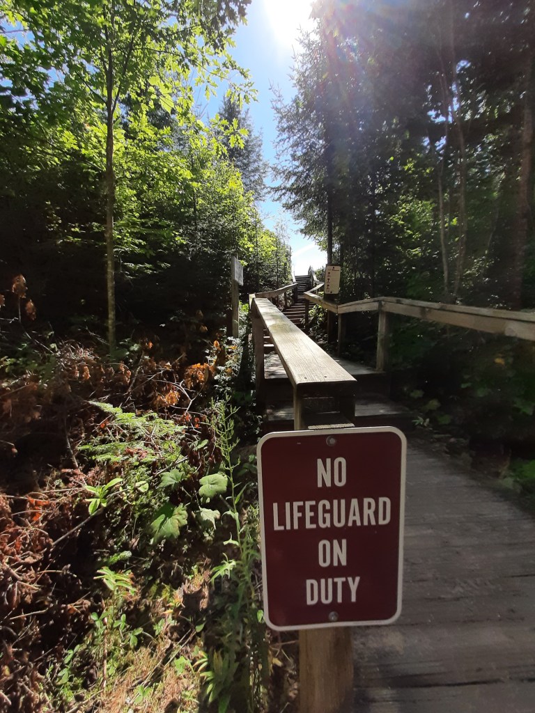 But there is a long beach, even a portion that allows dogs. When jumping in the lake, make sure swimming is allowed on that beach segment…there are riptides, at points, just off shore.