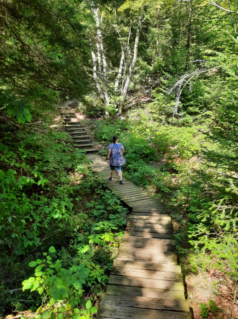 The walk from forested dunes to sandy beach was aided by a boardwalk.