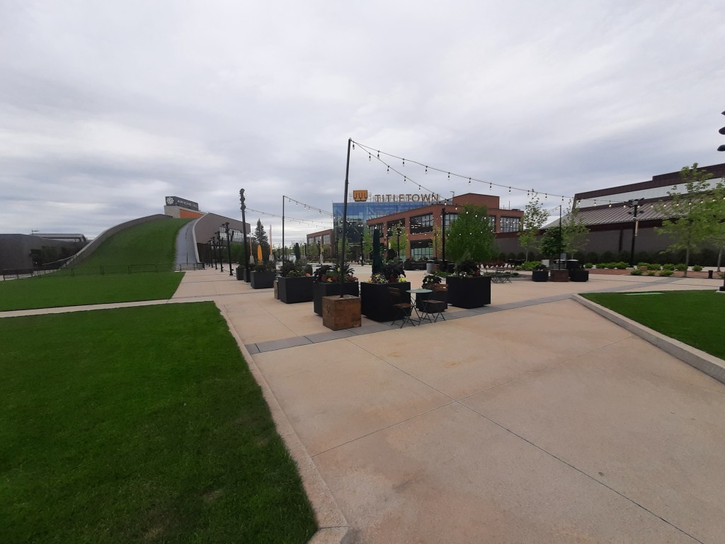 There’s also a hotel on this property. While some of the dining spots are pricey, many of the courtyard features, such as a full size football field and playground, are absolutely free.